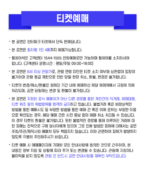 💡 예매 시 결제수단은 카드결제만 가능, 현금영수증 발행 불가