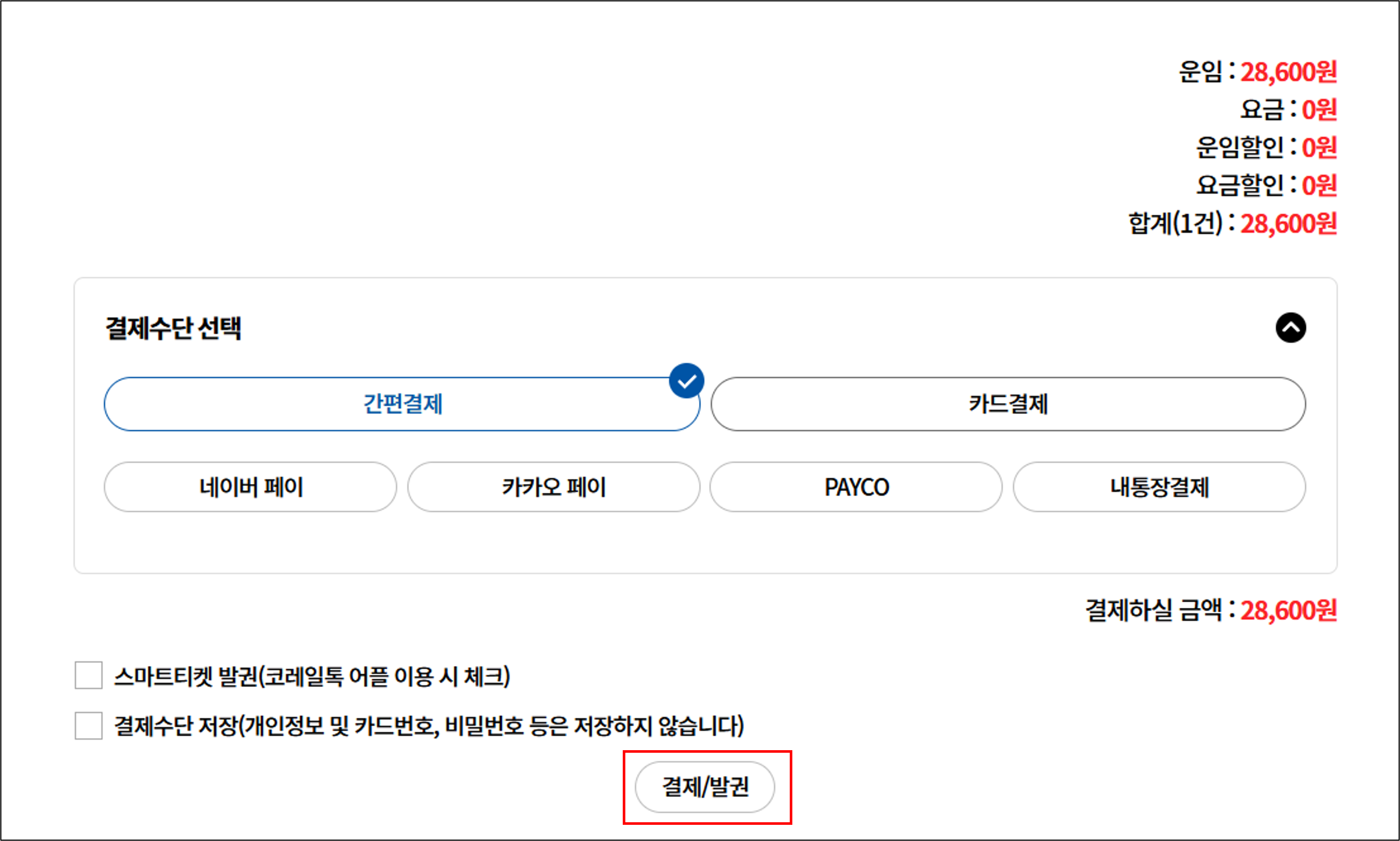 - 주의사항: 좌석 등급 변경 시 차액 발생